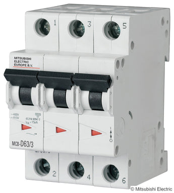 6A; 3-pole; D-curve; MCB; Icu = 10kA EN60898 = 15kA EN60947-2