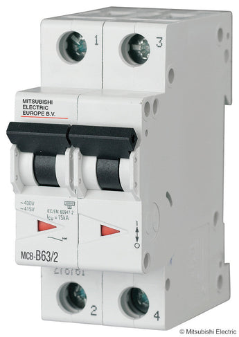 16A; 2 pole; B-curve; MCB; Icu = 10kA EN60898 = 15kA EN60947-2